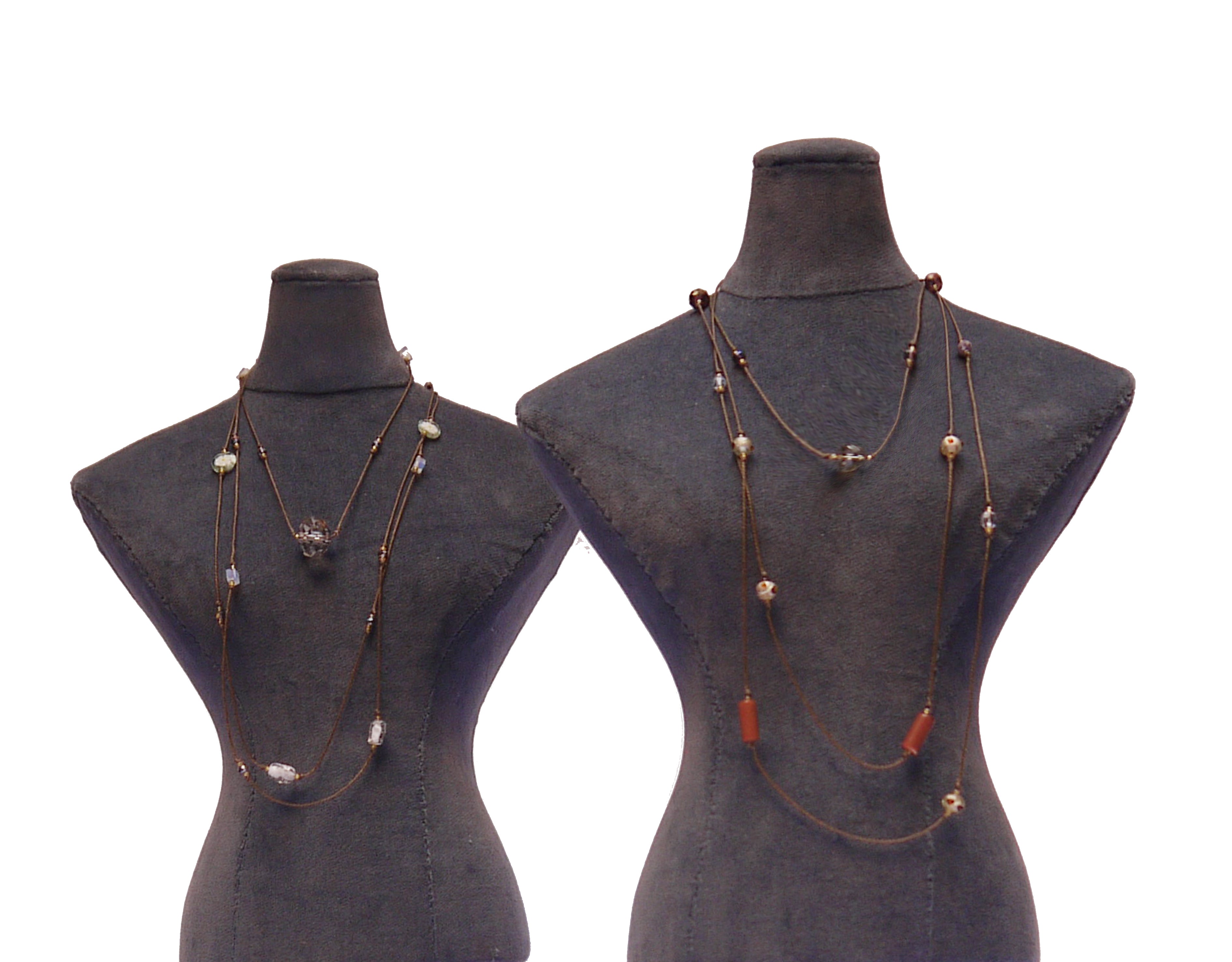 Wrap, laureate style necklace, Clear_White_Aventurine Colourway. Dew drops of glass, crystal and semi-precious stones. These ever popular necklaces from the jewellery/bijoux collection are designed and produced in Venice, Italy by the jewellery designer Samanta Fiorenza for P.S.FIORENZA. The image in the foreground is the item ordered in this collection. Should you wish to order the necklace on the second mannequin specify via e.mail: fiorenza@fiorenzadesign.com